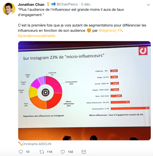 (1) Parmi mes précédents articles, à découvrir ou redécouvrir sur la thématique du marketing d’influence, je vous recommande notamment ceux-ci : « Influence 2.0 : et si on mettait enfin le marketing d’influence au service du parcours client ? » et « La nano-influence : nouvelle pilule miracle de la pharmacopée digitale ou poudre de perlimpinpin ? »
