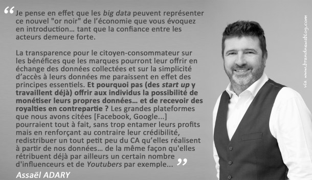 >> Le BrandNewsBlog : Pour Timothy Morey, Theodore Forbath et Allison Schoop, dont l’étude et les conclusions corroborent totalement vos recommandations déontologiques, les entreprises sont légitimes à exploiter les big data et peuvent en tirer un énorme avantage compétitif à condition de le faire de manière totalement transparente, en expliquant à quelles fins seront utilisées les données collectées, en permettant aux consommateurs d’avoir accès et de modifier à tout moment leurs données personnelles et à condition que le « prix » ou la valeur ajoutée de service offerte en contrepartie aux clients en vaille vraiment la peine. Mais malgré les efforts affichés par un certain nombre de marques, la plupart choisissent encore de collecter et utiliser les données clients sans les en informer. Pourquoi de telles résistances et une attitude aussi peu responsable, à votre avis ?