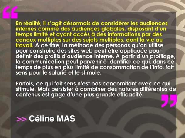 Mais il ne s’agit pas de renier l’apport digital. L’affirmation que je défends est la suivante : le care, le sens, la créativité doivent être au service de la performance de la communication ; c’est-à-dire au service du récepteur, de l’audience, des publics. Le premier enjeu pour un communicant est de se soucier, de considérer son ou ses publics et de produire des contenus dans les formats qui permettent le plus large accès, qui maximisent son attention et qui génèrent de la crédibilité.