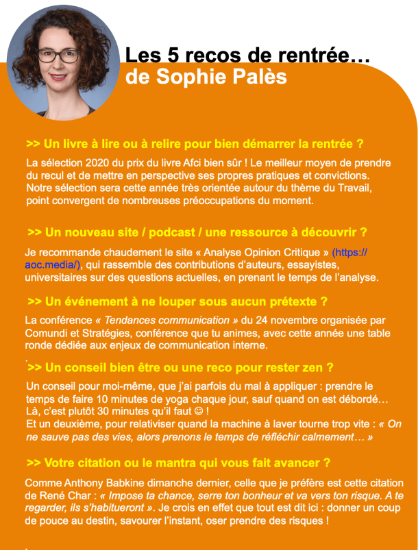 Au fond, à travers ces deux documents, l’Afci revient sur l’identité professionnelle des communicants internes, remet en perspective leurs pratiques et a aussi pour ambition de redonner de la force et de la visibilité à celles et ceux qui, au quotidien, exercent cette mission avec beaucoup d’engagement et souvent de passion.