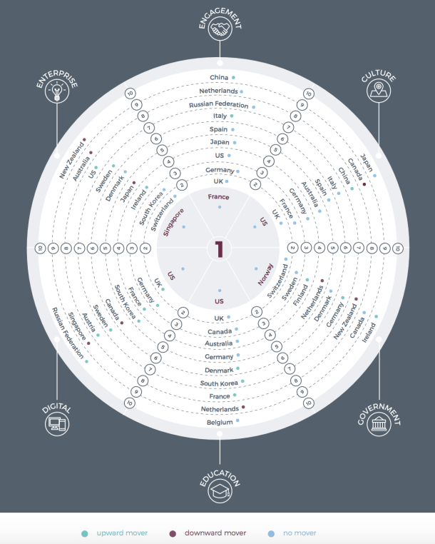 Le rapport de synthèse « Soft Power 30 » rédigé par les experts du cabinet Portland, en partenariat avec l’Université de Californie du sud et de nombreux experts internationaux des phénomènes d’influence est particulièrement intéressant à lire…