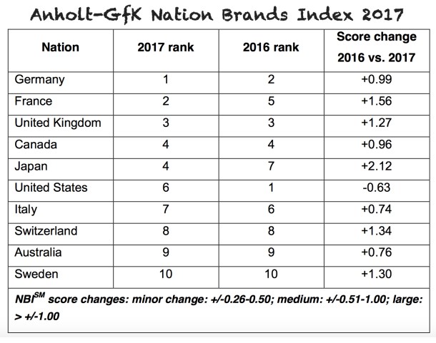 En comparaison de cet amer breuvage, le cru 2017 des plus grands classements mondiaux en matière de nation branding et d’influence paraît infiniment plus gouleyant ! Car si tous les instituts d’étude ne nous classent pas aussi haut que l’index Anholt-GfK Nation Brands, la progression de notre marque pays est saluée par tous, accompagnée de rebonds spectaculaires.