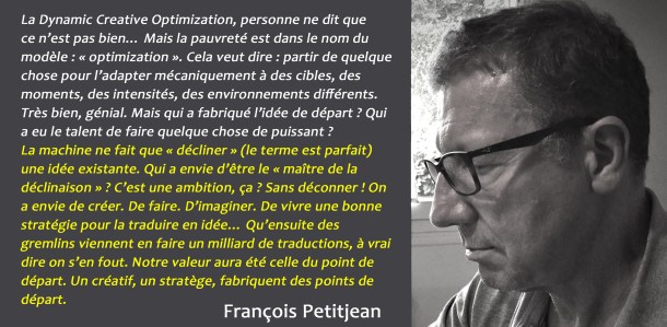 Je mesure également que cet imaginaire de bonheur par la consommation n’est pas spécifique à la publicité puisque nous le retrouvons dans les séries télévisées, le cinéma hollywoodien et bien d’autres. Mais cela ne doit pas empêcher un vrai débat de s’instaurer sur cette question…