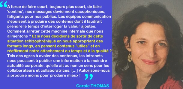 J’ai proposé en 2010 l’expression de « slow communication » à l’exemple du mouvement slow food, pour réfléchir aux dangers d’une trop forte rapidité qui se conjugue souvent avec un turn over accru des messages, de l’utilisation des nouveaux supports comme si la communication devait toujours être à la pointe de la modernité.