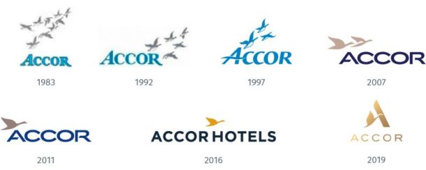 Sur une longue période, on s’aperçoit ainsi que les logos qui montraient une image de puissance ou de souveraineté, souvent à base de blason, ont disparu. Les formes qui étaient souvent sous un format fermé, carré ou rectangulaire, se sont arrondis et souvent ouverts (cf pour exemple ci-dessous, les évolutions des logos d’Accor et d’EDF). De même, les logos se sont fortement simplifiés. Les formes enchevêtrées, complexes ou à base de plusieurs éléments ont évolué vers des formats plus réduits. Cela s’explique bien sûr par une volonté d’accessibilité et de proximité, mais aussi en raison du changement du principal support du logo qui n’est plus le papier, mais le web.