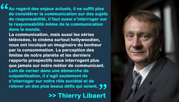 Thierry Libaert : C’est le livre dans lequel je me suis le plus investi. J’ai écrit une bonne trentaine d’ouvrages, mais c’est la première fois que je m’exprime à la première personne, que je relate des expériences vécues. J’ai eu la chance de participer à des événements comme le Grenelle de l’environnement, la mise en place de la communication climatique par le GIEC et je voulais en tirer des leçons pour la pratique de la communication.